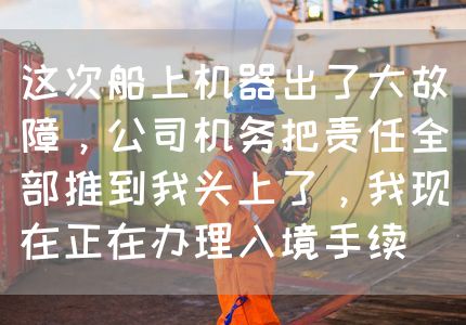 这次船上机器出了大故障,公司机务把责任全部推到我头上了,我现在正在办理入境手续