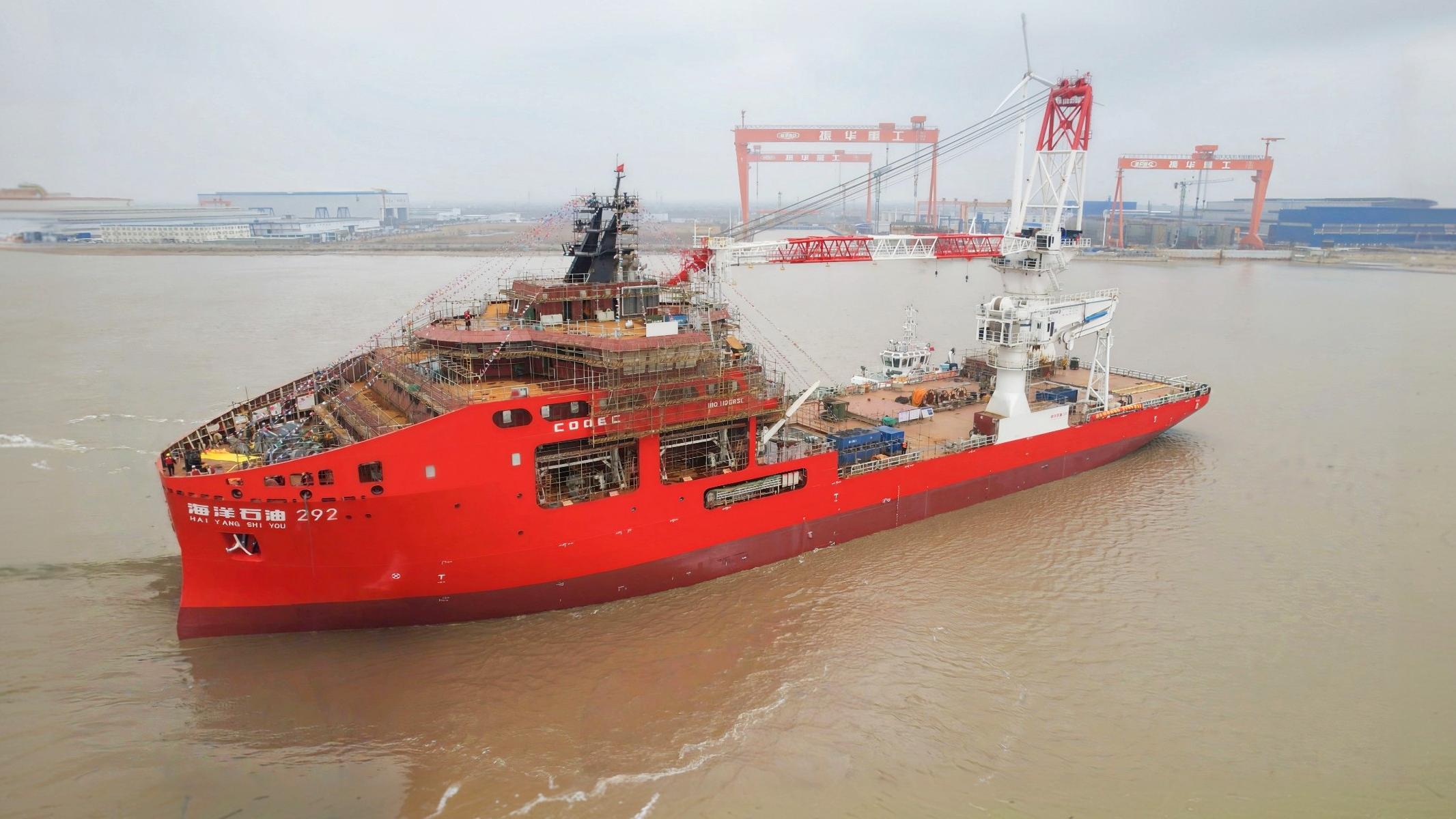 近日,上海振华重工集团为中海油深圳海洋工程技术服务有限公司建造的深水多功能海洋工程船“海洋石油292”号在江苏启东吉水,标志着我国在深远海资源开发与工程作业领域再添“利器”,高端海洋工程装备自主设计和建造能力实现新跃升。